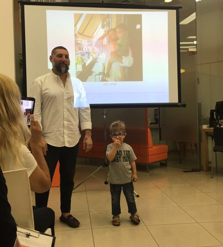> השף אסף גרניט הגיע להרצאה בסניף מזרחי טפחות ברמת גן, במסגרת פעילות “נפגשפים", עם בנו ליאו, שלקראת סוף ההרצאה נצמד לרגל של אבא וגנב כצפוי את ההצגה.
