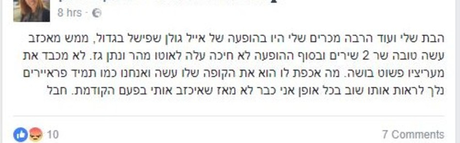 חודש עמוס בהופעות עבר על אייל גולן, ויכול להיות שהוא מושך את עצמו קצת יותר מדי. אתמול, במופע ענק שערך בבריכת הסולטן בירושלים רבים מהצופים הרגישו שמשהו לא כשורה. התגובות לאחר ההופעה היו של תחושת זלזול "הוא לא היה בשיאו, לא הציג בסוף ההופעה את הלהקה, עשה הופעה זריזה וברח כמו רוח" אמרה אחת הצופות וגולשים רבים הגיבו ברשתות החברתיות תגובות נזעמות על ההופעה. מי שהיה בהופעות בעבר של הזמר המסלסל יודע שבדרך כלל גולן נותן את כל כולו. אז מה היה שם?