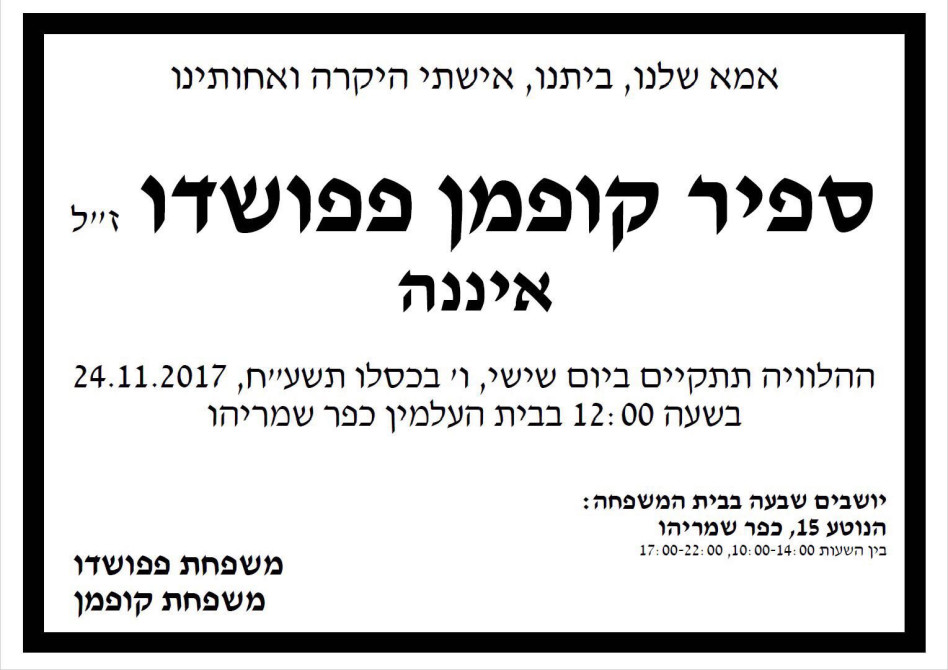 ספיר קופמן פפושדו מלכת היופי לשנת 1984 ודוגמנית מצליחה בשנות ה-90 הלכה לעולמה הבוקר (חמישי) לאחר לחימה ממושכת במחלת הסרטן. קופמן בת 53, הייתה נשואה ליואב פפושדו, בנו של איש העסקים אלי. השאירה אחריה שלושה ילדים- עומר, נועה ועידן. הבת האמצעית והיחידה של קופמן, היא נועה פפושדו שהתפרסמה בשנים האחרונות כדוגמנית ובכך הייתה ממשיכת דרך לאמה.