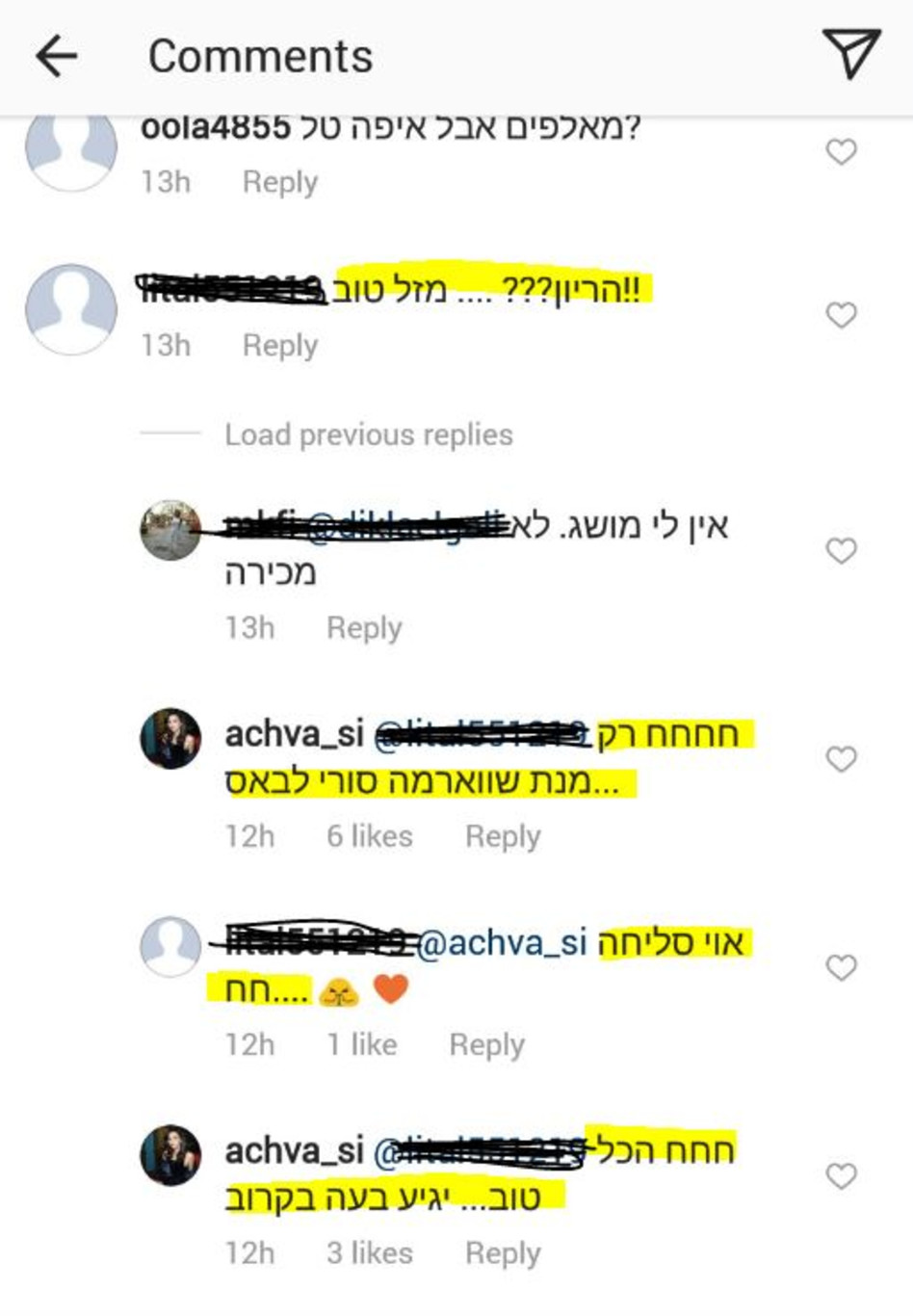 למרות שכולם יודעים שלא שואלים אישה אם היא בהריון, העוקבים לא היססו ושאלו מיד את סיטבון בתגובות לתמונה האם יש בשורות חדשות על הריון מתפתח. כוכבת הריאלטי אכזבה כשהשיבה באותן תגובות שמדובר בסך הכל במנת שווארמה, אבל הפתיעה כשהצהירה כי "זה יגיע בקרוב בעזרת השם".