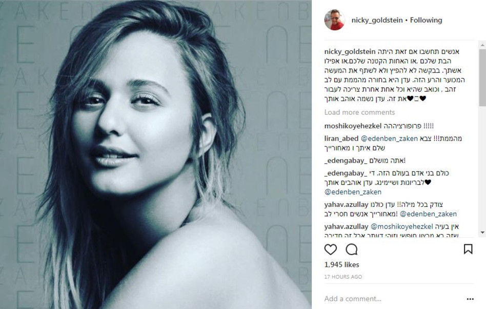בינתיים, לא נשמע קולה של הזמרת, אך חברים רבים מהתעשייה החליטו להשתמש ברשתות החברתיות כדי להעביר מסר תומך לבן זקן. "די לבריונות" כתבה החברה הטובה מעיין אשכנזי, המגישה אופירה אסייג " דבר אחד בטוח, עדן בן זקן זמרת השנה ואשת השנה במוזיקה ואת זה גם סטוקר משועמם לא יכול לקחת ממנה... עדן ממי, אני ועוד אלפים מחבקים אותך"