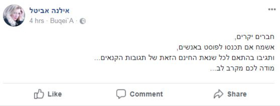 כנראה שאביטל לא כל כך אהבה את הביקורת ואת ההשוואה לגורו היחסים ומומחית האורגזמות וביקשה מהעוקבים בעמוד הפייסבוק הפרטי שלה שיגנו עליה: "אשמח אם תכנסו לפוסט ב'אנשים' ותגיבו בהתאם לכל שנאת החינם הזאת של תגובות הקנאים..." התוצאה? 17 אלף צפיות ב-3 שעות. נניס
