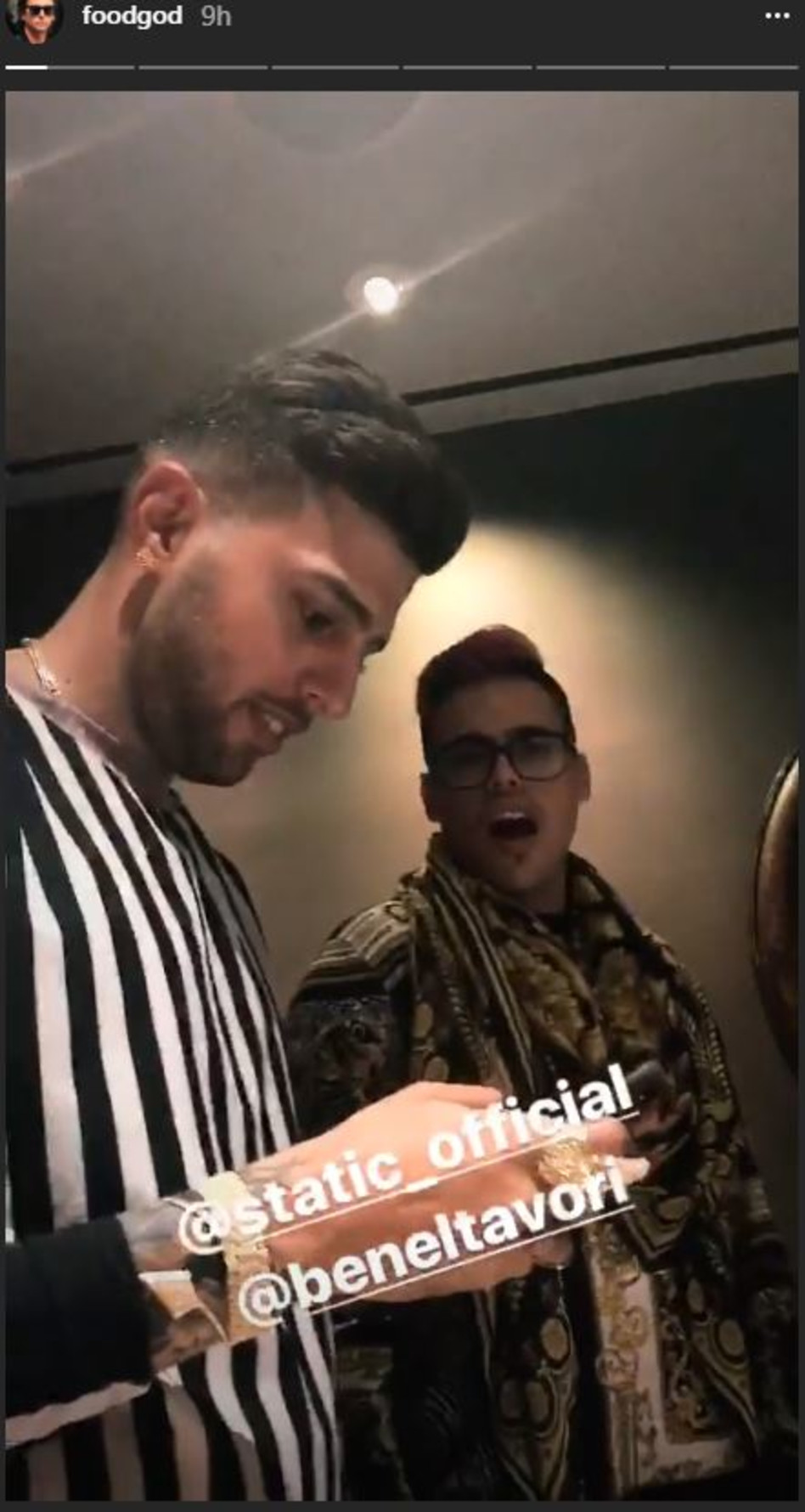 אחרי שבילו בחדר המלון שלהם ונהנו מהאזנה משותפת לשירים והחלפת גורמטים ותכשיטים, סטטיק המשיך את הערב עם כמה מחברי הלהקה ועם צ'בן בכבודו ובעצמו, שהפך בשנה האחרונה לבלוגר ואושיית אוכל גדולה כך שהוא לקח אותם למסעדת "נובו" המפורסמת. אחרי שהצליח לשכנע את סטטיק לאכול את אחד ממטעמי השף הכריז הזמר הישראלי כי זה הדבר הכי טעים שהוא אכל והוא נשאר בארצות הברית ולא חוזר לארץ. צ'בן המשיך את הבדיחה ואמר "נכון זה לא חומוס, סליחה ישראל אבל הוא לא חוזר אליכם!"