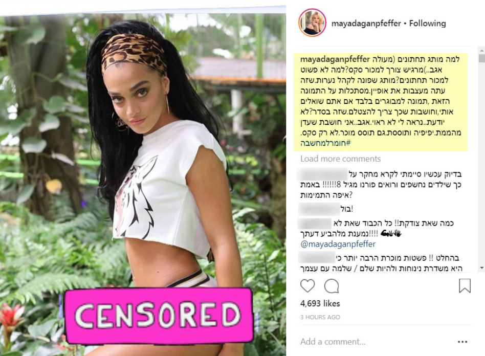 הבדרנית מיה דגן שמרבה לעלות פוסטים ביקורתיים ברשתות, העלתה פוסט ביקורת על הקמפיין החדש של פיקס בכיכובה של הדוגמנית עדן פינס כשהמסר היה מדוע מותג הלבשה תחתונה לנערות מרגיש צורך למכור סקס.