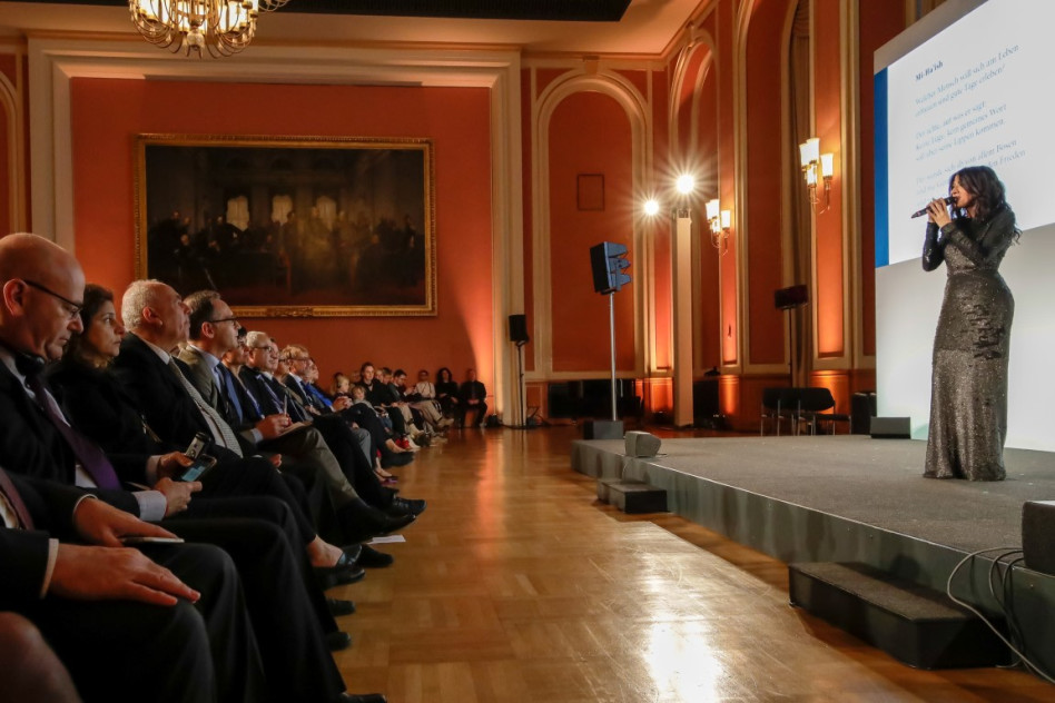 שבוע אחרי ביקורה של הקנצלרית מרקל בישראל והמפגש עם ראש הממשלה נתניהו, הגיעה דנה אינטרנשיונל, השגרירה הישראלית לענייני הסברה לגרמניה, למפגש עם שר החוץ הגרמני לביקור גומלין. הדיווה, המורגלת בהופעות ברחבי העולם סיפרה שההופעה השבוע באולם עיריית ברלין הייתה עבורה מרגשת במיוחד: "דווקא בברלין, בבניין המפואר הזה שנראה בדיוק ככה גם לפני שבעים וחמש שנים, מול קהל גרמני, כשמולי שר החוץ והשרים, ועם השיר המיוחד הזה מספר תהילים שאומר 'סור מרע ועשה טוב, בקש שלום ורדפהו' כשמאחורי התרגום בגרמנית, והמחשבה שאני מעבירה במוסיקה שאין לה שפה או גבולות את המסר החשוב הזה, שבעיני הוא תמצית היהדות האמיתית, החומלת, המקבלת, העוטפת, האוהבת, יהדות שמדברת על עשיית טוב ורדיפה אחרי שלום וצדק, כל אלו גרמו לי להתרגש הפעם במיוחד, עד כדי שלא הספקתי אפילו להתאפר כמו שצריך ולסיים את הבייביליס בשיער."