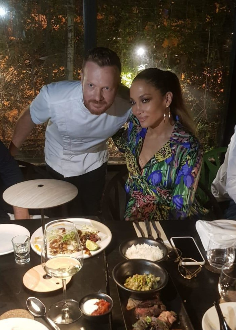 לעומת זמרים אחרים שלא עושים כמעט באלנס, שלא נדבר על חזרות, את יום האתמול העבירה לופז בפארק הירקון, על הבמה הענקית- שם התכוננה למופע הגדול שלה שיערך הערב (חמישי) אל מול עשרות אלפי צופים נלהבים. את הלילה, העבירו הזוג הנוצץ וכל 25 חברי הפמלייה שלהם במסעדת טאיזו בתל אביב, שם אירח אותם באופן אישי בחדר הפרטי של המסעדה השף יובל בן נריה.