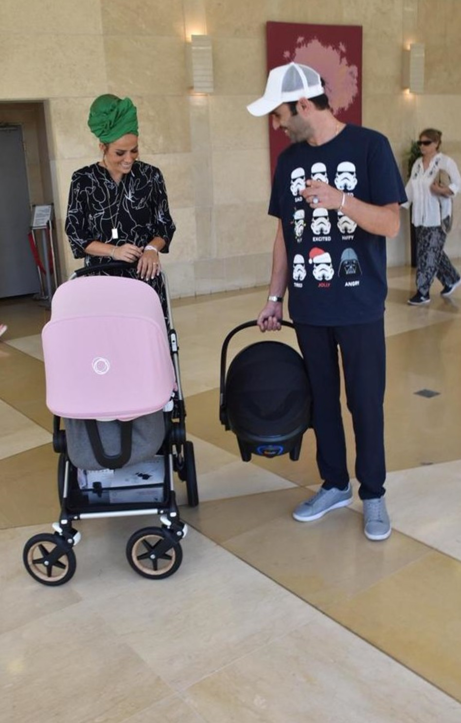 כשהיא מאושרת ומחוייכת מתמיד, נתפסה אברג'יל בעדשת המצלמה כשהיא עושה את צעדיה הראשונים אל מחוץ לבית החולים עם התינוקת הקטנה, שטרם נבחר שמה והאבא הגאה שהוסיף נסיכה חדשה למשפחה.