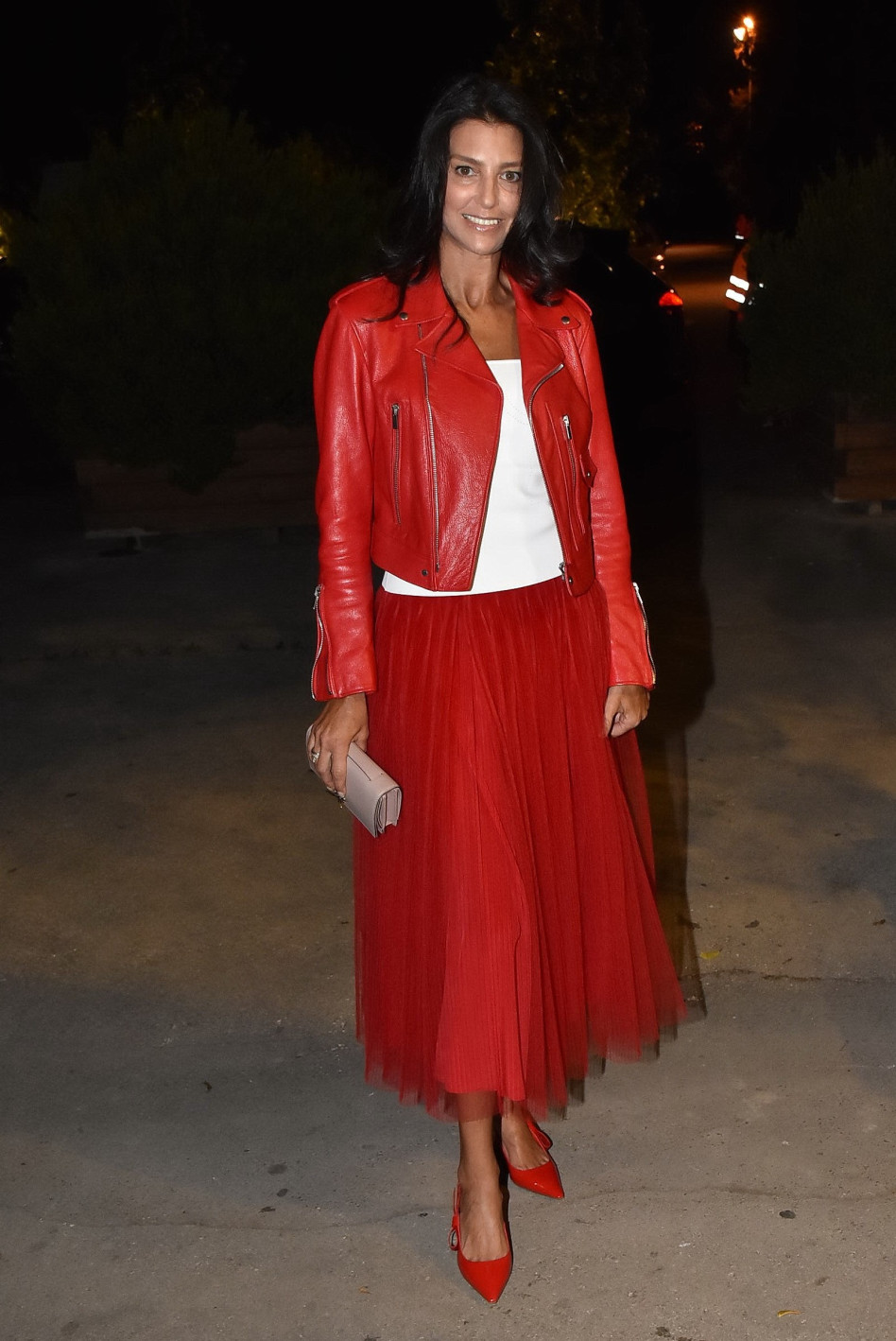 האישה באדום, חלי קז, סובבה ראשים בשילוב של חולצה לבנה עם חצאית פליסה בשכבות טול ובד בגוון השני, שנלבשו תחת מעיל עור אדום אש. בחוכמה, ויתרה על בלינג לטובת מראה נקי וחגיגי.
