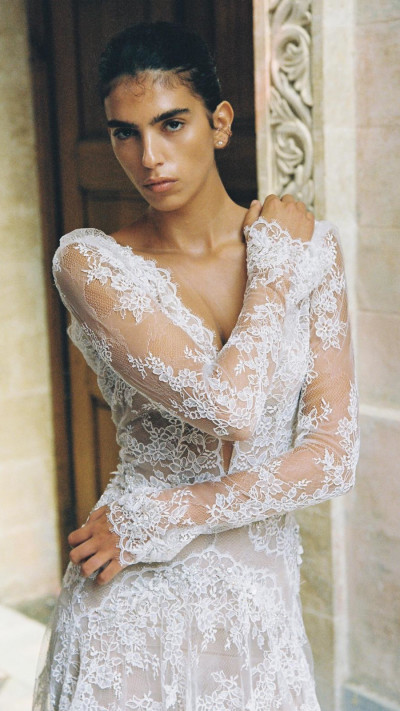 הקולקציה מציעה גם אופציות נועזות יותר, כמו שמלת מיני אוורירית עם שובל דרמטי ופרטי נוצות, המדגישה את הקו הצעיר והעכשווי של המותג. תשומת לב מיוחדת ניתנה לפרטים - החל משרוולי תחרה שקופים ועד לעיטורי פנינים המפוזרים בעדינות לאורך הבדים.
