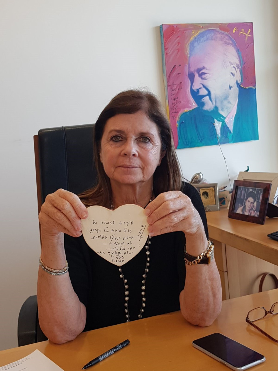 "מקדישה את הלב לזכרו של חברי מילדות, איל שחם ז"ל, שנהרג בקרב על רמת הגולן במלחמת יום כיפור. הלב שנשבר אז – זוכר! תמיד!!"